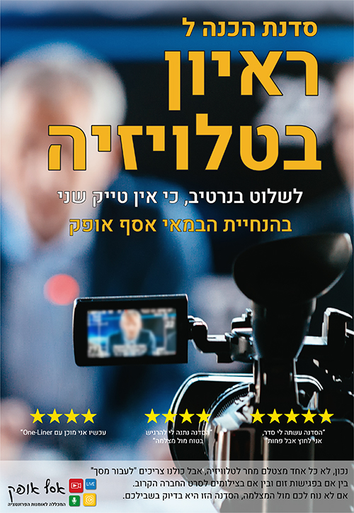 3–3.5 שעות של תרגול מעשי ואישי, שבהן המשרדים שלכם הופכים לאולפן טלוויזיה מקצועי.
