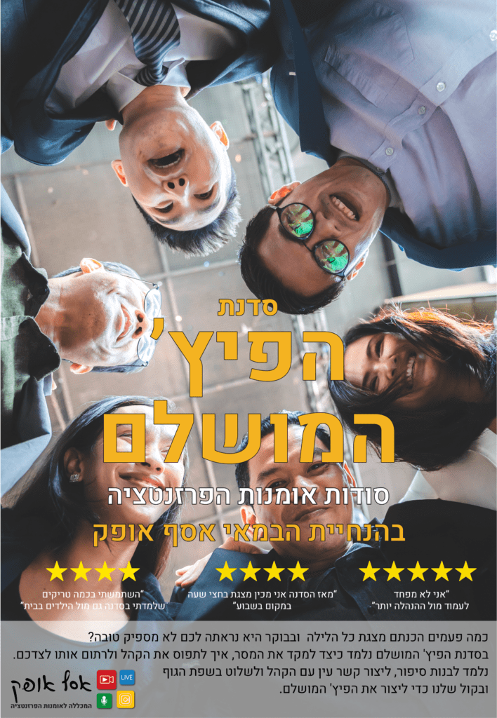 הפרזנטציה בהנחיית אסף אופק תלמד אותך לשלוט בשפת הגוף, בקול ובמסר שלך כדי לרתק